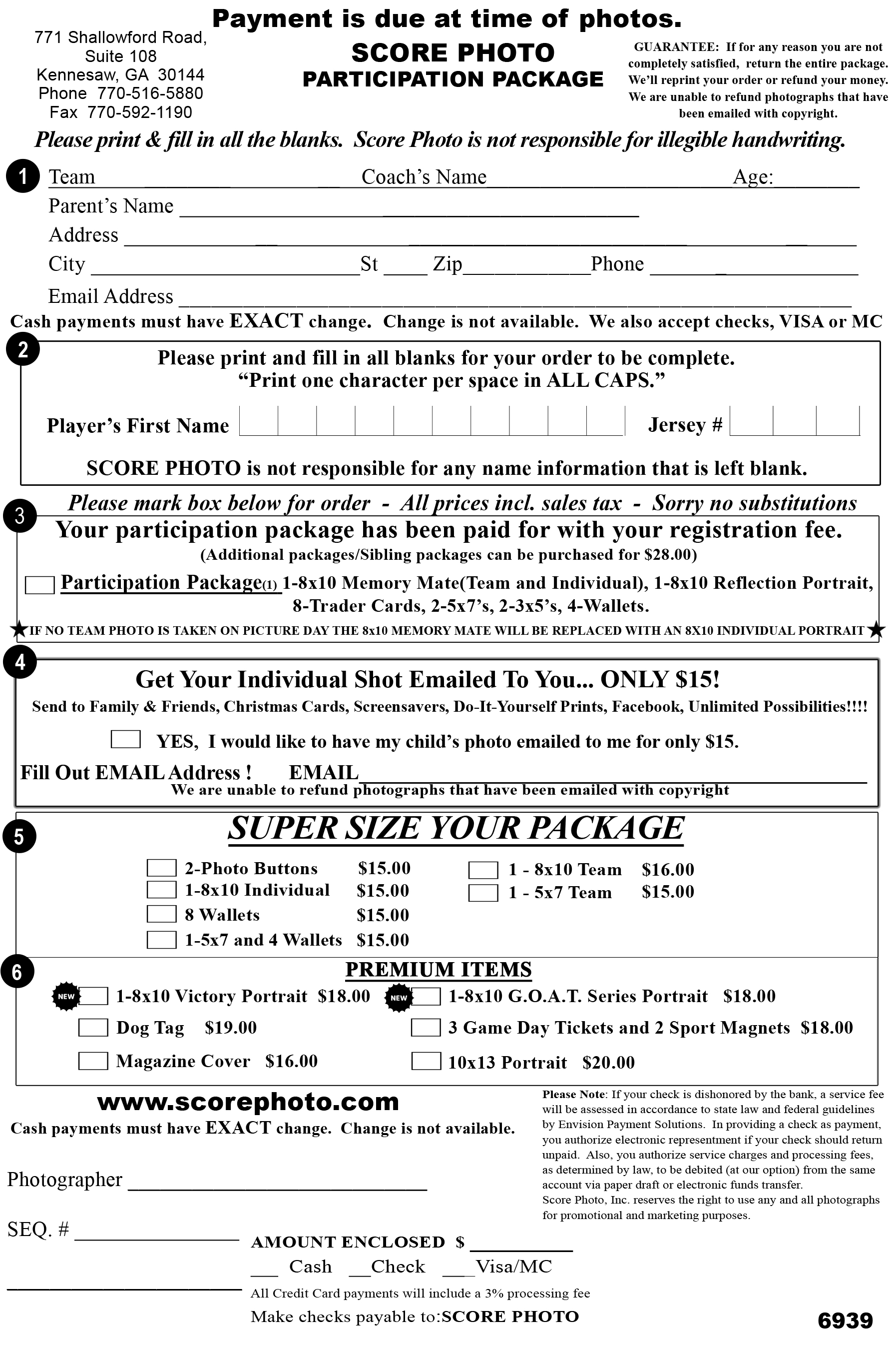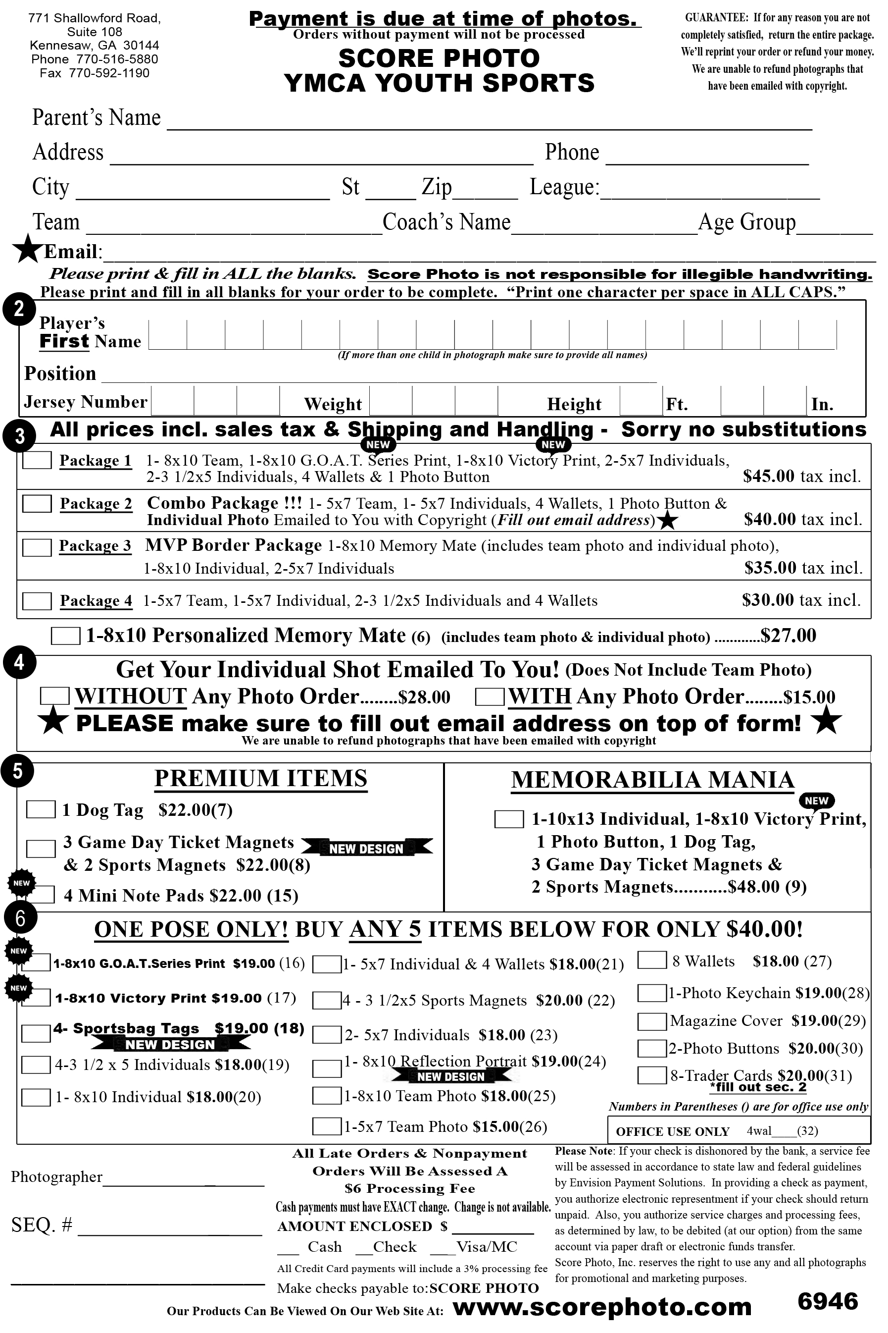 Have your order form filled out before you arrive. Check with your coach or team mom for a blank order form. If they don’t have one, check the league website. As a last option, you can always call us, 770-516-5880 ! We will be happy to email you one.